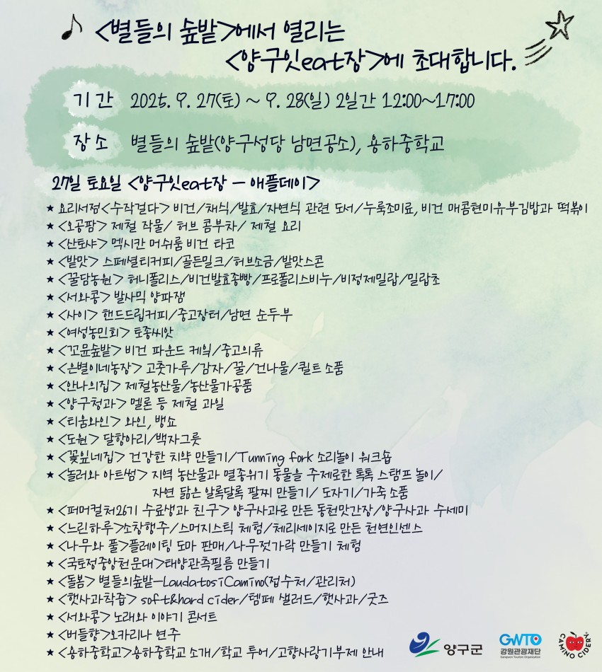 <별들의 숲밭>에서 열리는 <양구 eat장>에 초대합니다